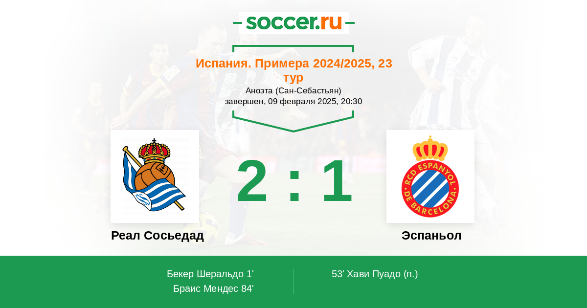 Протокол матча Реал Сосьедад против Эспаньол