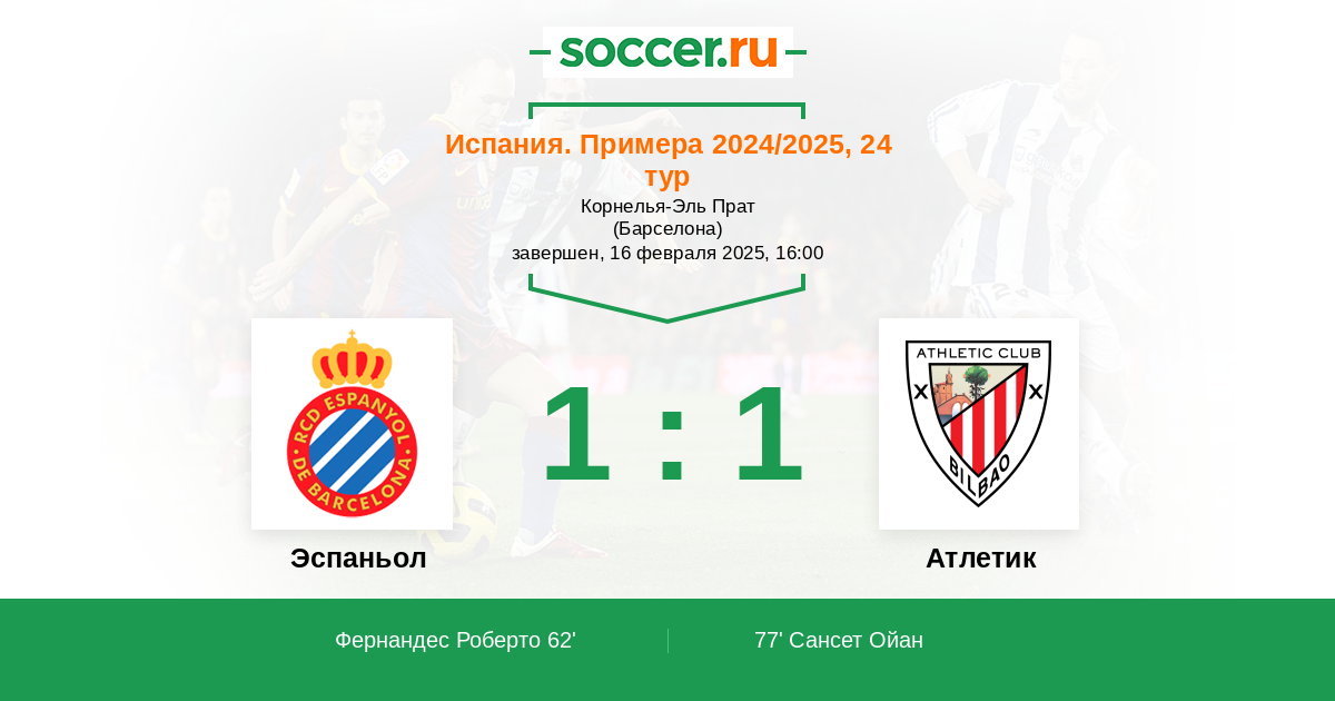 Протокол матча Эспаньол против Атлетик