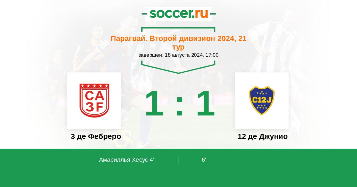 Протокол матча 3 де Фебреро против 12 де Джунио