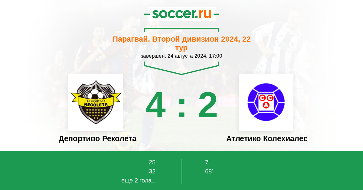 Протокол матча Депортиво Реколета против Атлетико Колехиалес