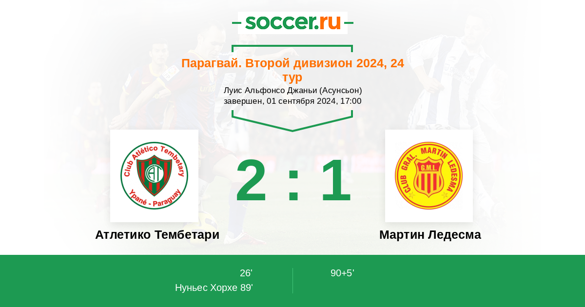 Протокол матча Атлетико Тембетари против Мартин Ледесма