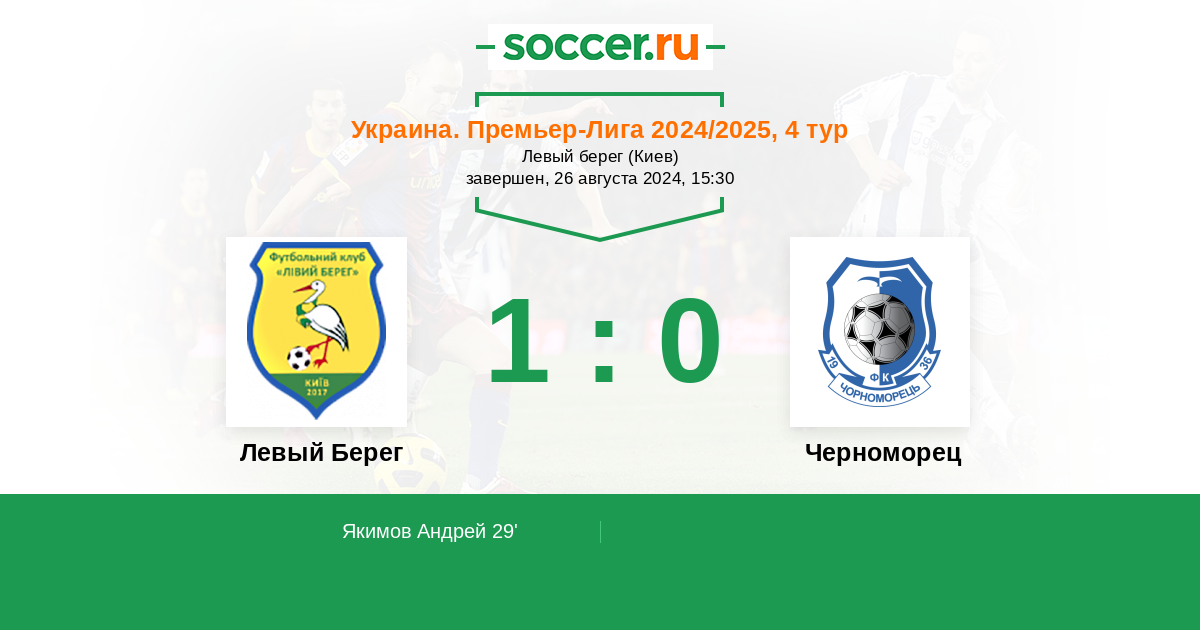 Протокол матча Левый Берег против Черноморец