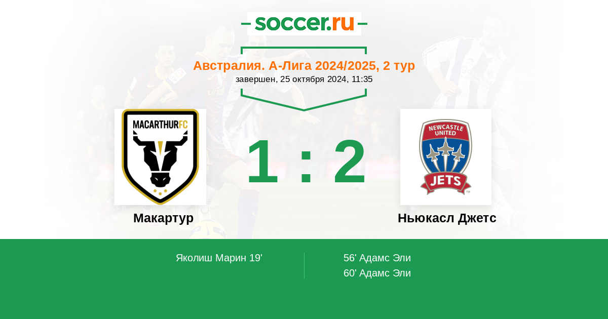Протокол матча Макартур против Ньюкасл Джетс