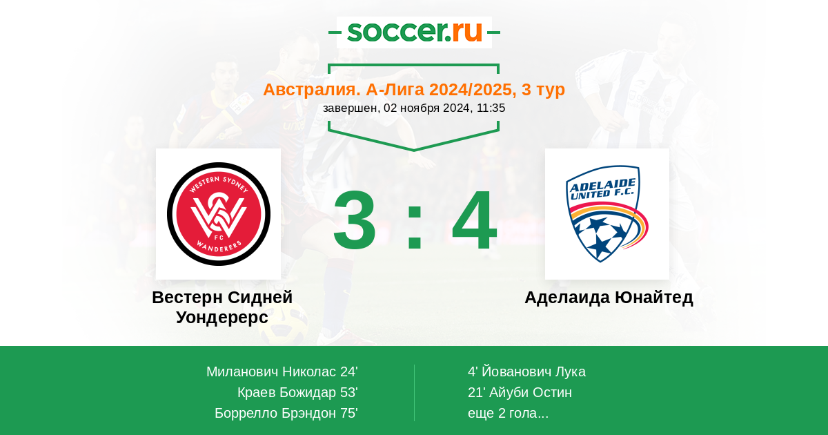 Протокол матча Вестерн Сидней Уондерерс против Аделаида Юнайтед