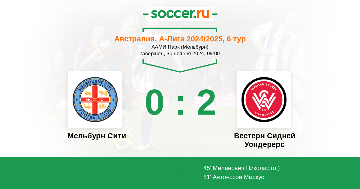Протокол матча Мельбурн Сити против Вестерн Сидней Уондерерс