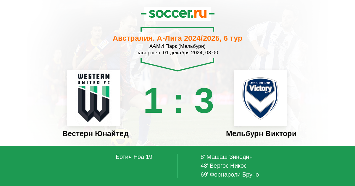 Протокол матча Вестерн Юнайтед против Мельбурн Виктори