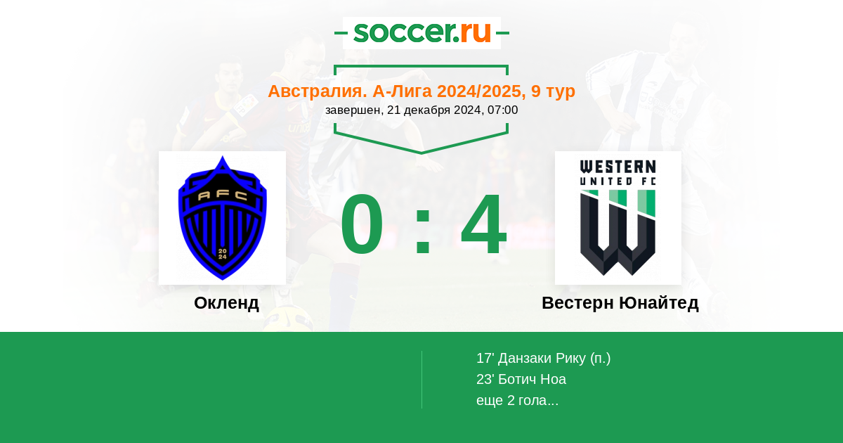 Протокол матча Окленд против Вестерн Юнайтед