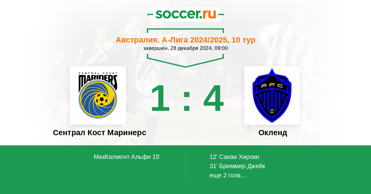 Протокол матча Сентрал Кост Маринерс против Окленд