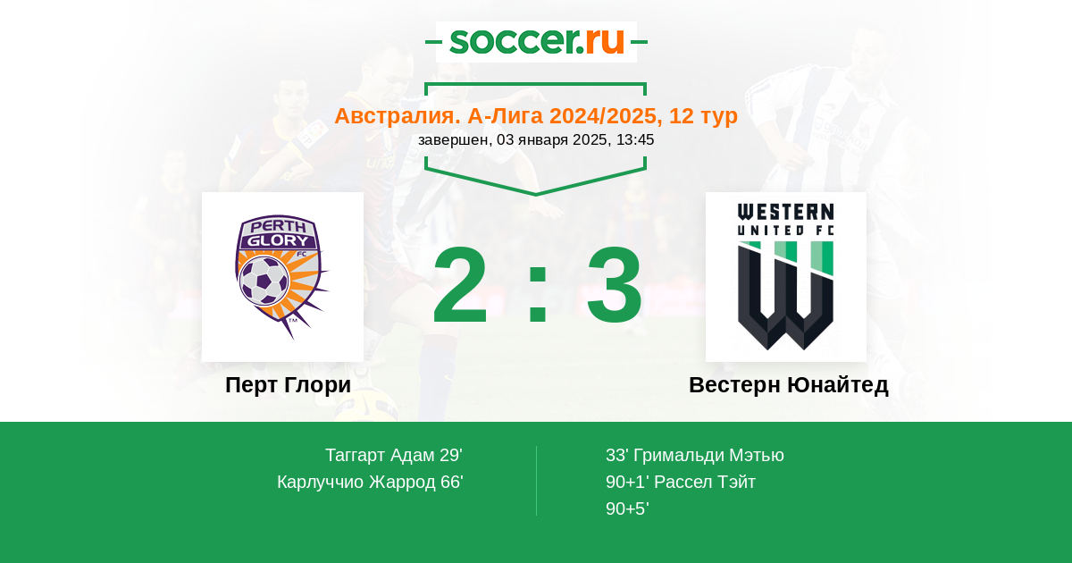 Протокол матча Перт Глори против Вестерн Юнайтед