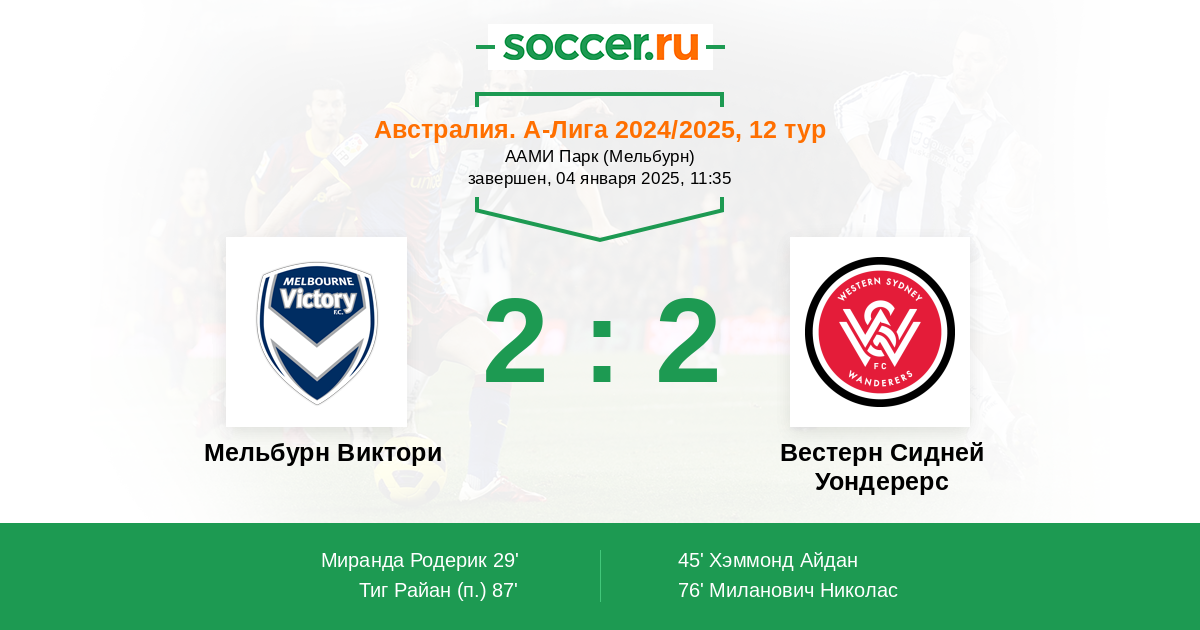 Протокол матча Мельбурн Виктори против Вестерн Сидней Уондерерс