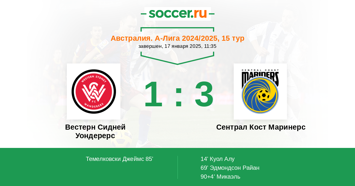 Протокол матча Вестерн Сидней Уондерерс против Сентрал Кост Маринерс
