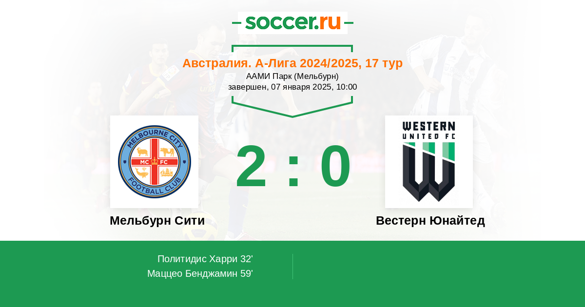 Протокол матча Мельбурн Сити против Вестерн Юнайтед