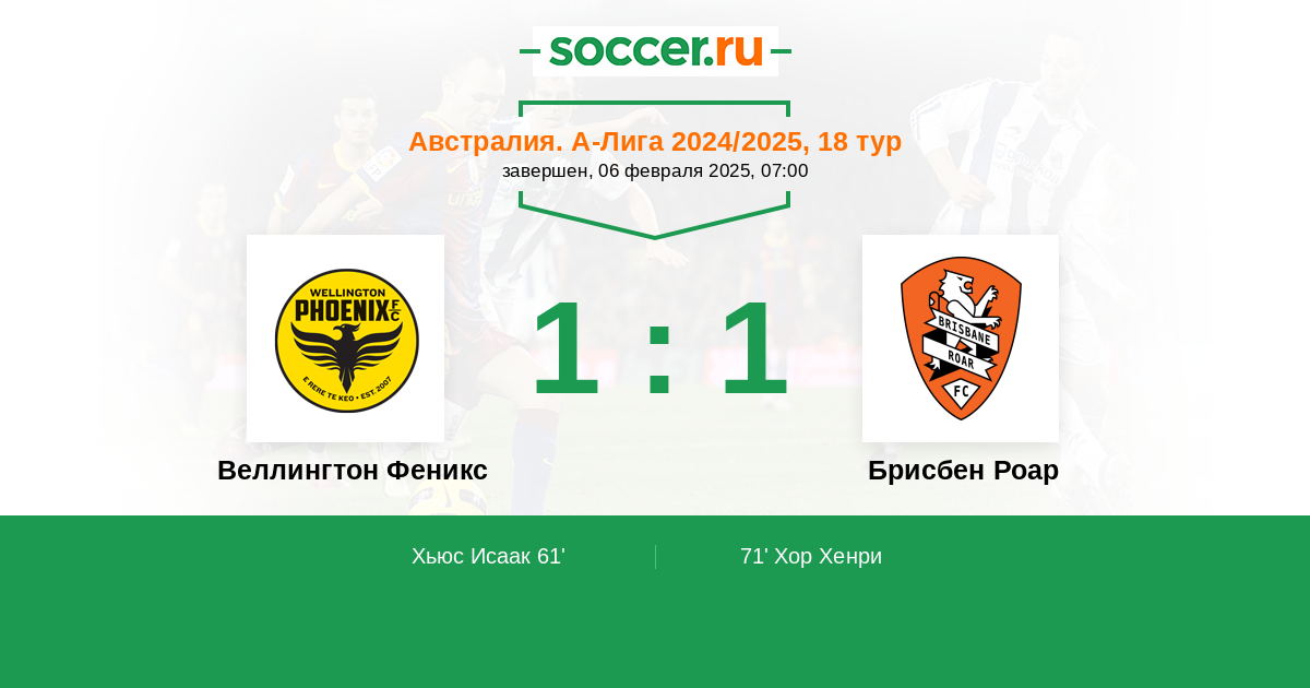 Протокол матча Веллингтон Феникс против Брисбен Роар