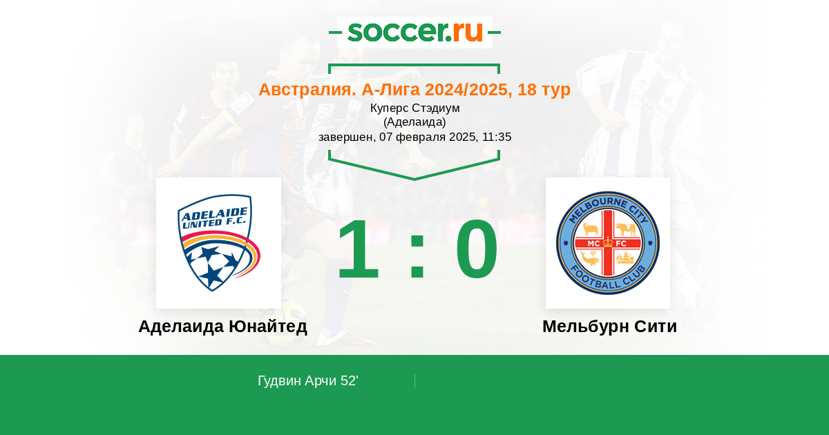 Протокол матча Аделаида Юнайтед против Мельбурн Сити