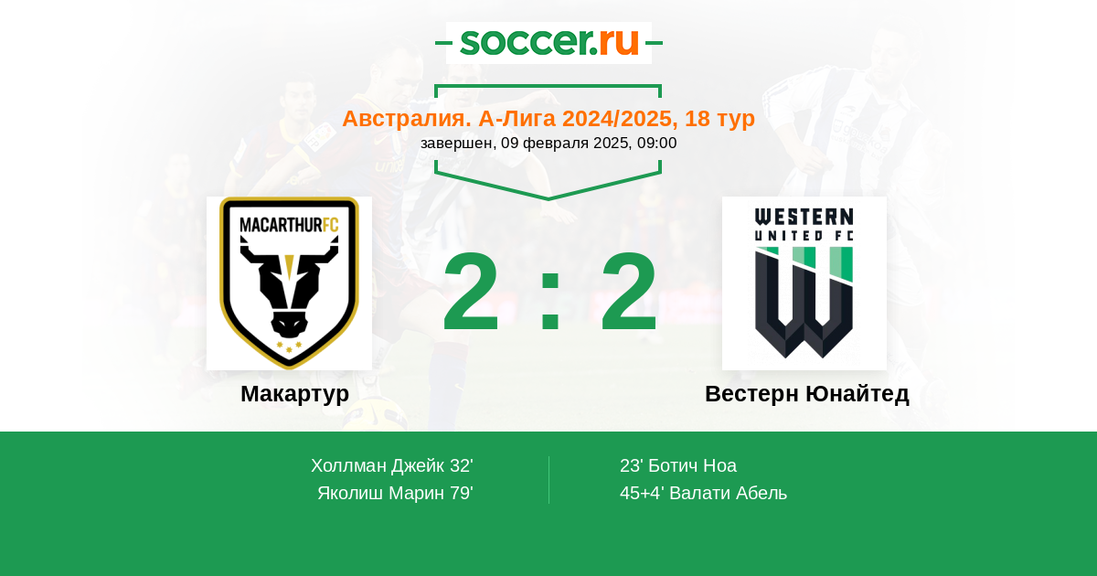 Протокол матча Макартур против Вестерн Юнайтед