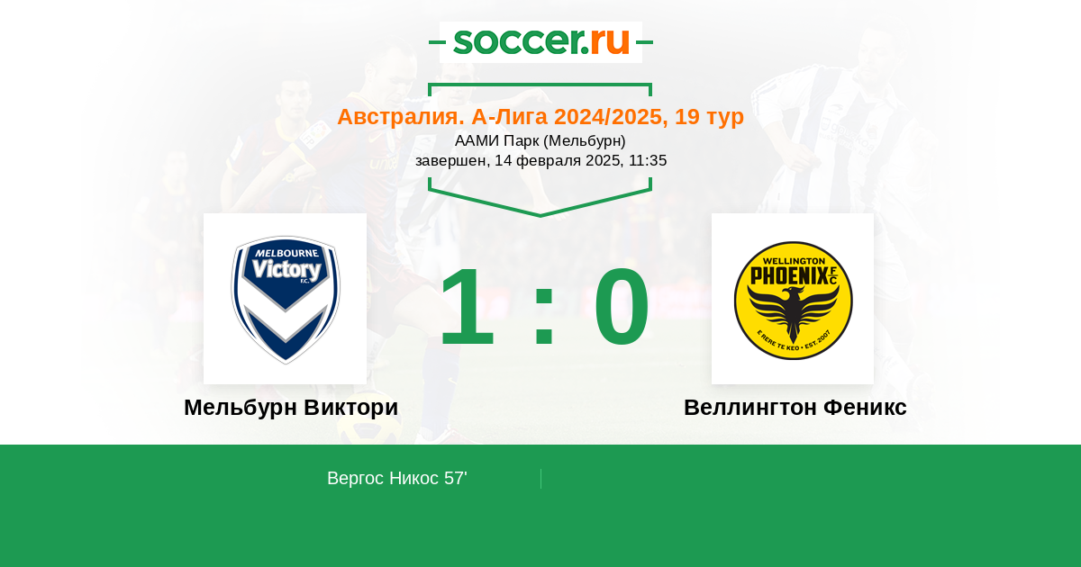 Протокол матча Мельбурн Виктори против Веллингтон Феникс