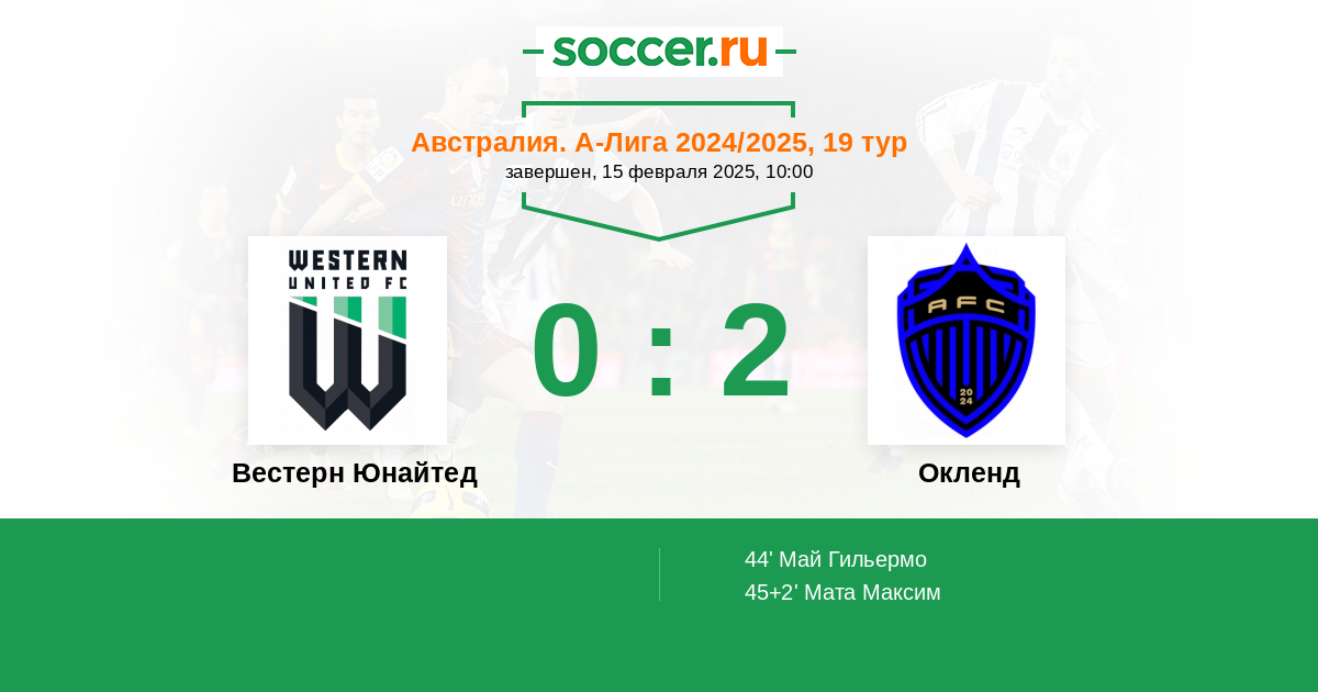 Протокол матча Вестерн Юнайтед против Окленд
