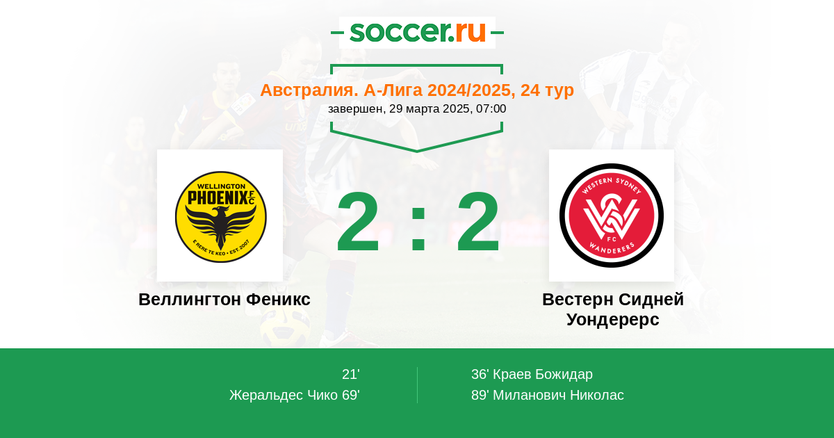Протокол матча Веллингтон Феникс против Вестерн Сидней Уондерерс