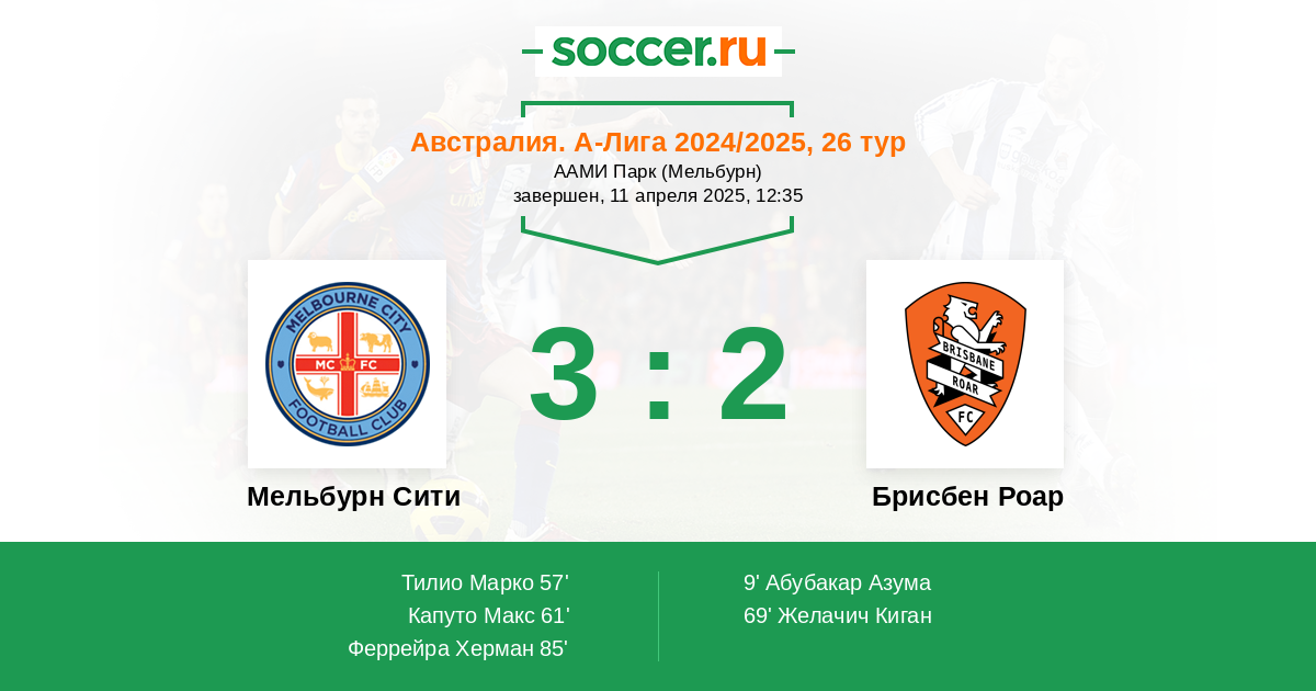 Протокол матча Мельбурн Сити против Брисбен Роар