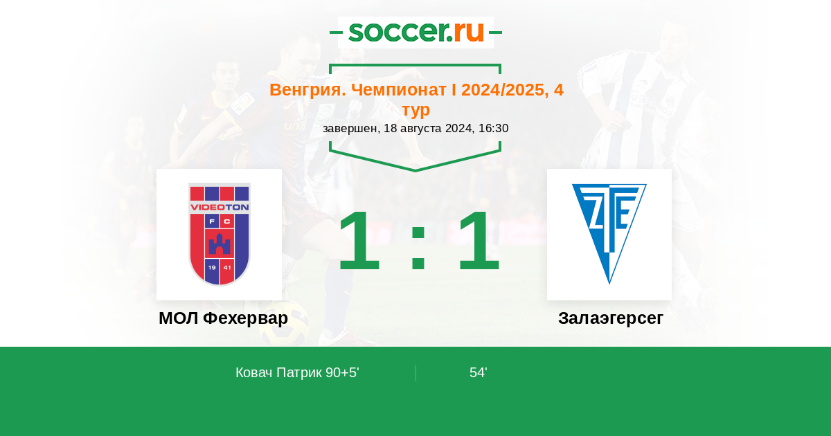Протокол матча МОЛ Фехервар против Залаэгерсег