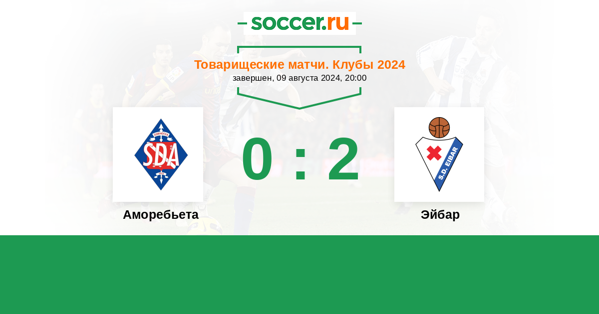 Товарищеские матчи. Клубы 26.07.2023 Аморебьета Логотип футбольный клуб Аморебьета (Аморебьета-Эчано) 2:1 Логотип футбольный клуб Эйбар Эйбар