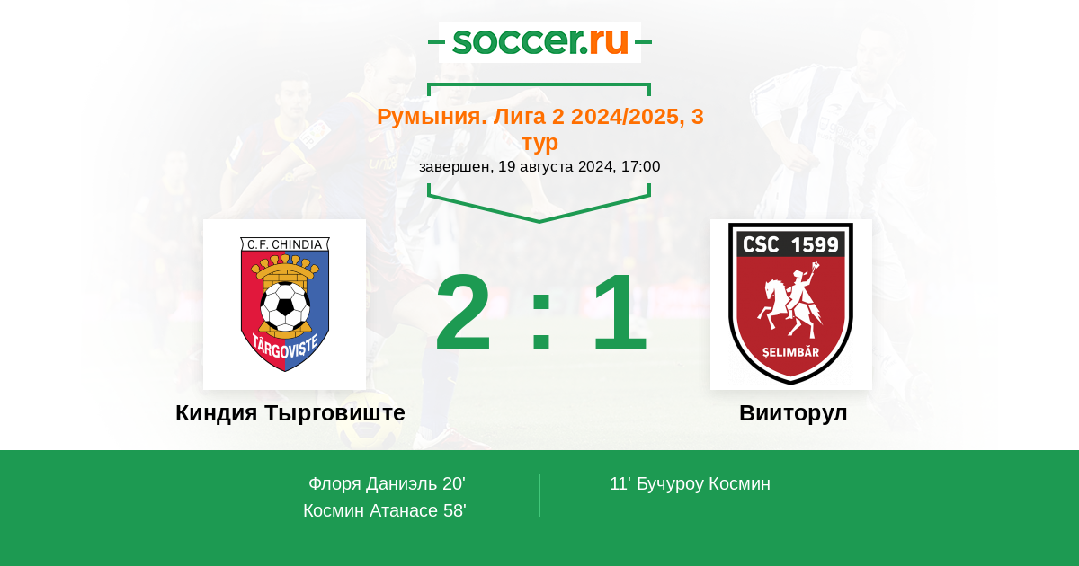 Протокол матча Киндия Тырговиште против Вииторул