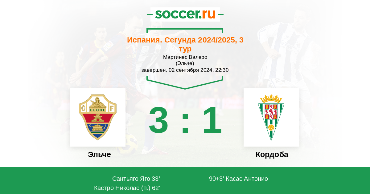 Протокол матча Эльче против Кордоба