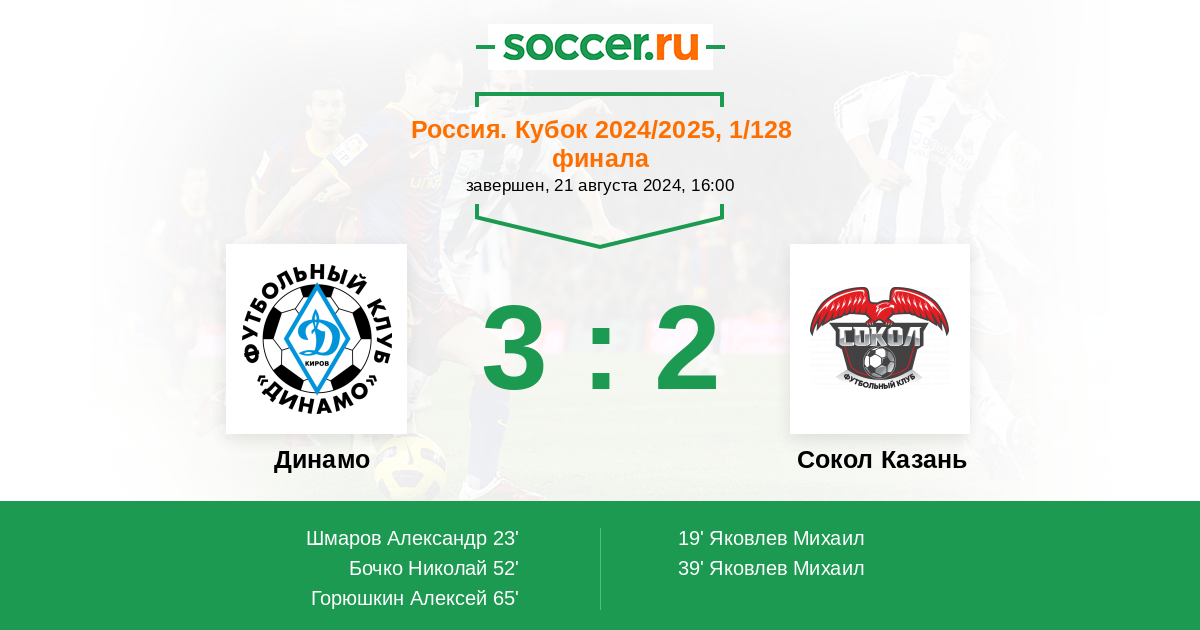 Протокол матча Динамо Киров против Сокол Казань