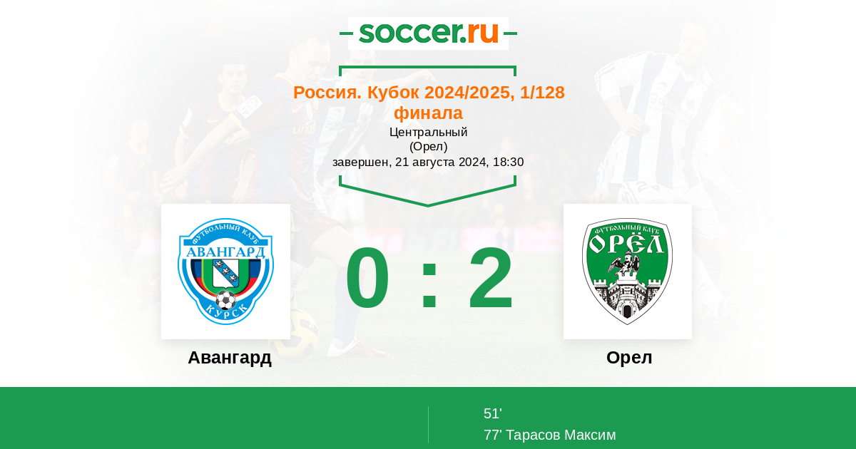 Протокол матча Авангард против Орел