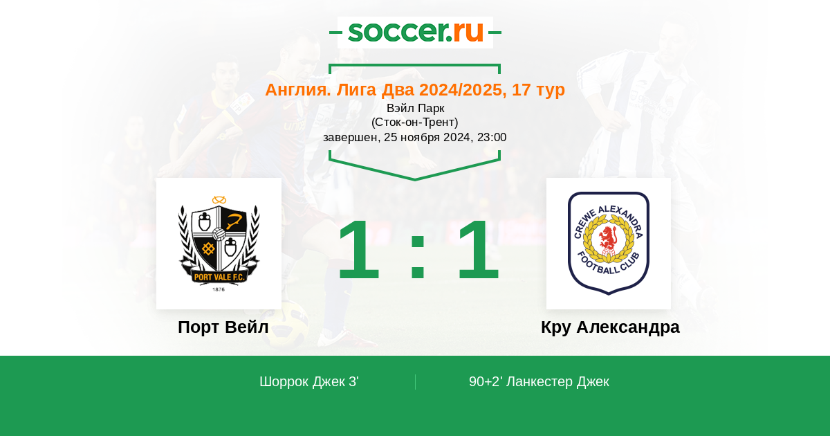Протокол матча Порт Вейл против Кру Александра