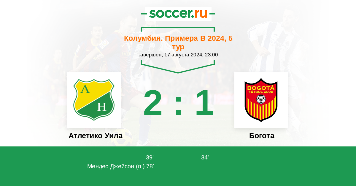 Протокол матча Атлетико Уила против Богота