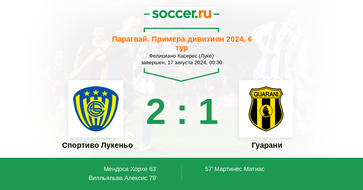 Протокол матча Спортиво Лукеньо против Гуарани