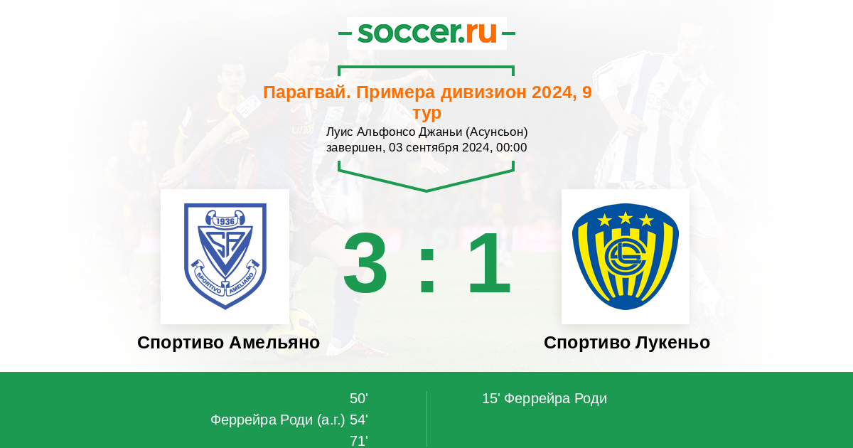 Протокол матча Спортиво Амельяно против Спортиво Лукеньо