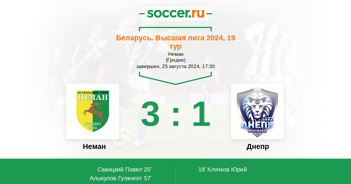 Протокол матча Неман против Днепр