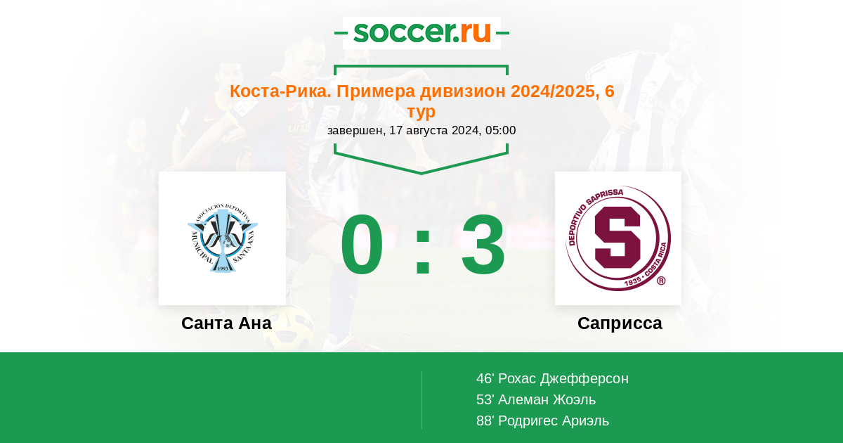 Протокол матча Санта Ана против Саприсса