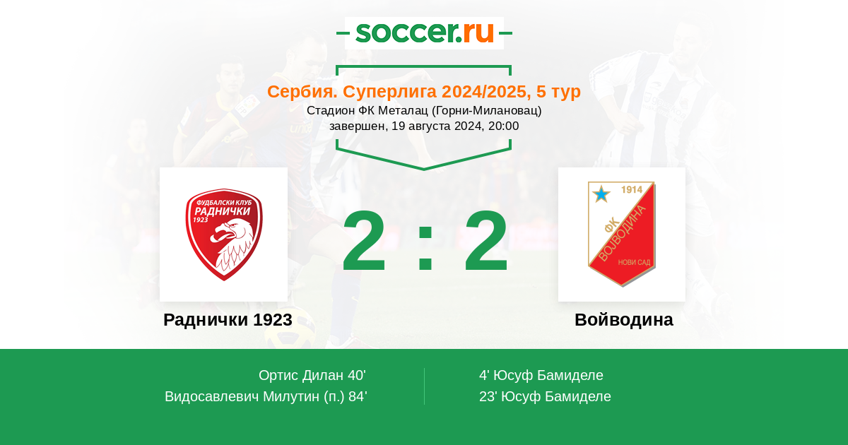 40' (1:2) Ортис Дилан (9) (Видосавлевич Милутин (55))