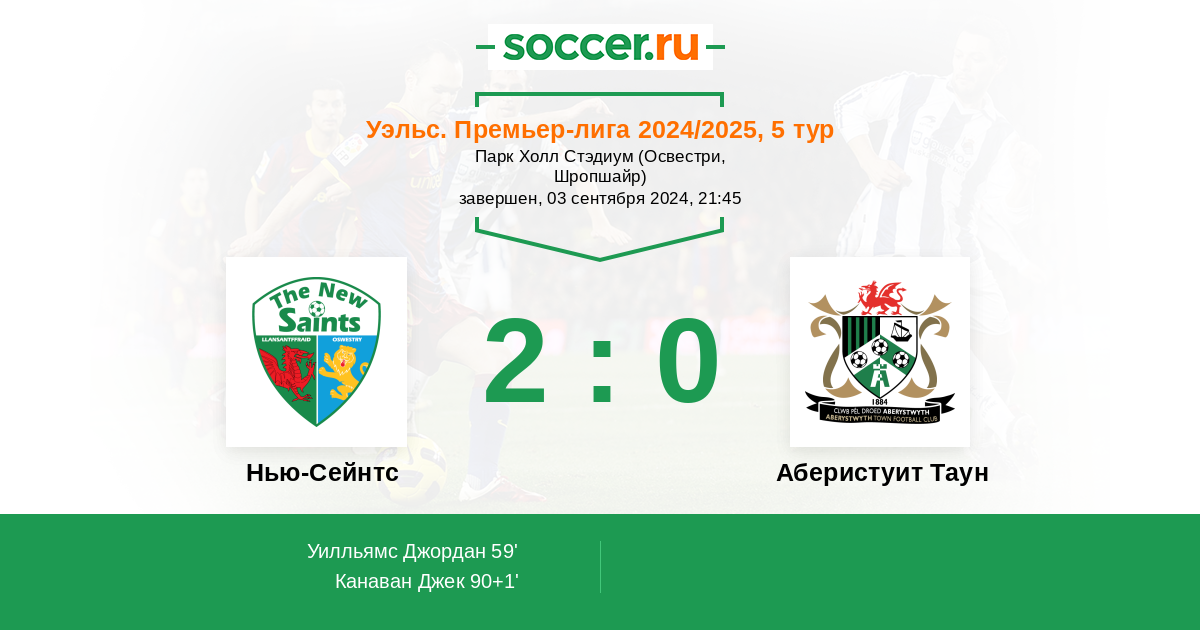 Протокол матча Нью-Сейнтс против Аберистуит Таун