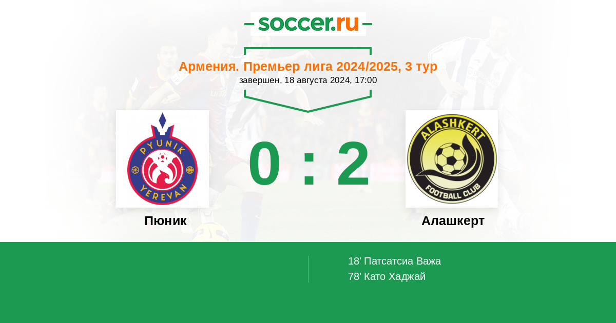 18' (0:1) Патсатсиа Важа (Оганесян Беник)