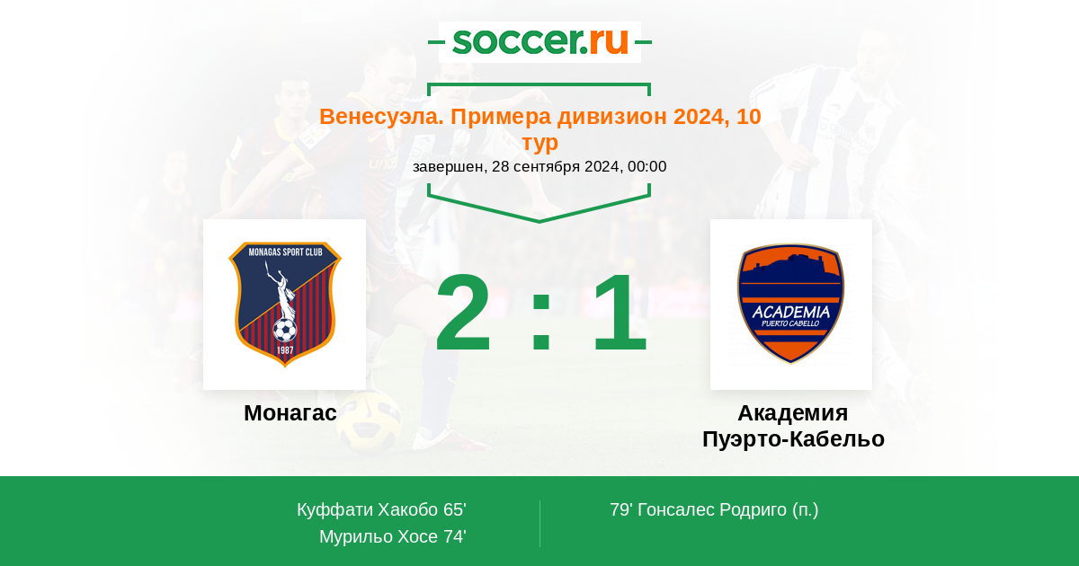 65' (1:0) Куффати Хакобо (11) (Ромеро Андрес (8))