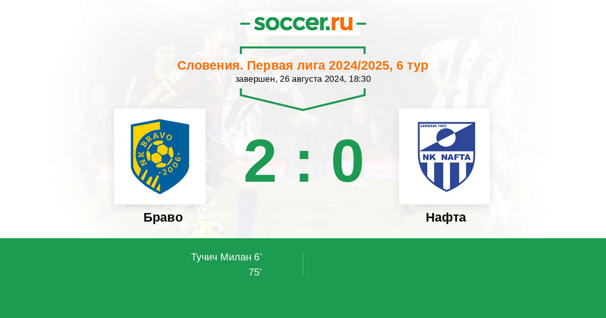 Протокол матча Браво против Нафта