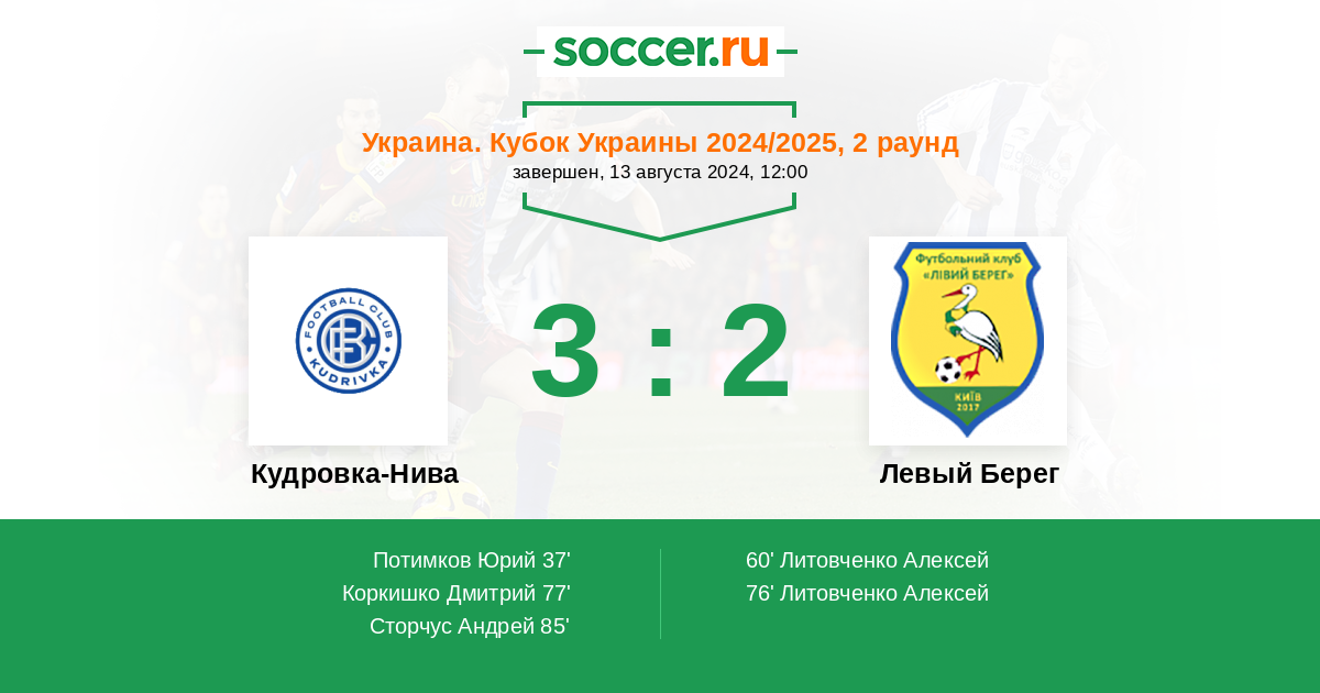 Протокол матча Кудровка-Нива против Левый Берег