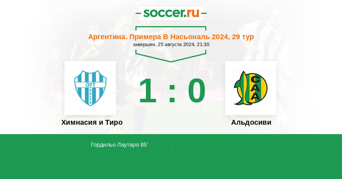 Протокол матча Химнасия и Тиро против Альдосиви