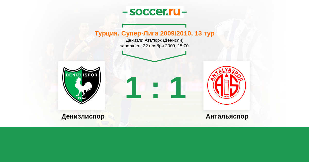 Турция. Суперлига 28.10.2006 Денизлиспор Логотип футбольный клуб Денизлиспор 1:1 Логотип футбольный клуб Антальяспор Антальяспор