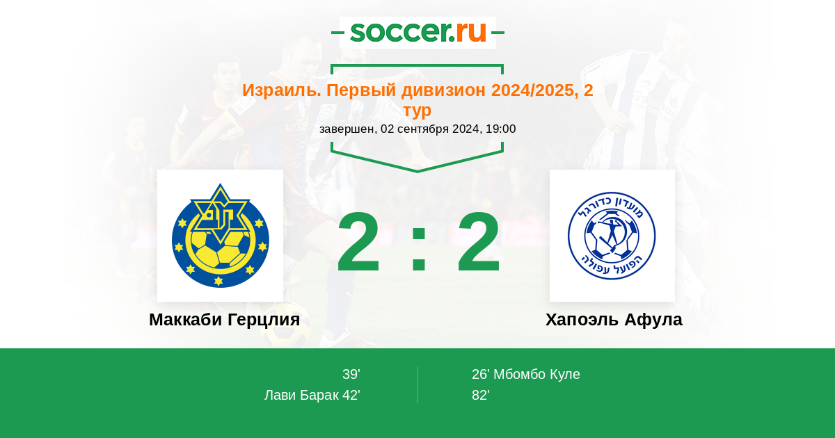 Протокол матча Маккаби Герцлия против Хапоэль Афула