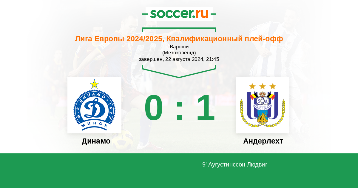 Протокол матча Динамо против Андерлехт
