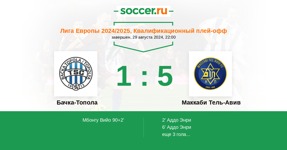 Протокол матча Бачка-Топола против Маккаби Тель-Авив