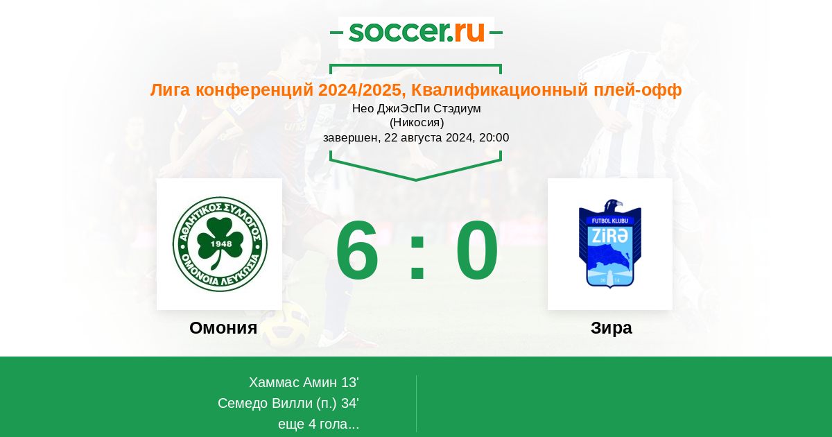 Протокол матча Омония против Зира