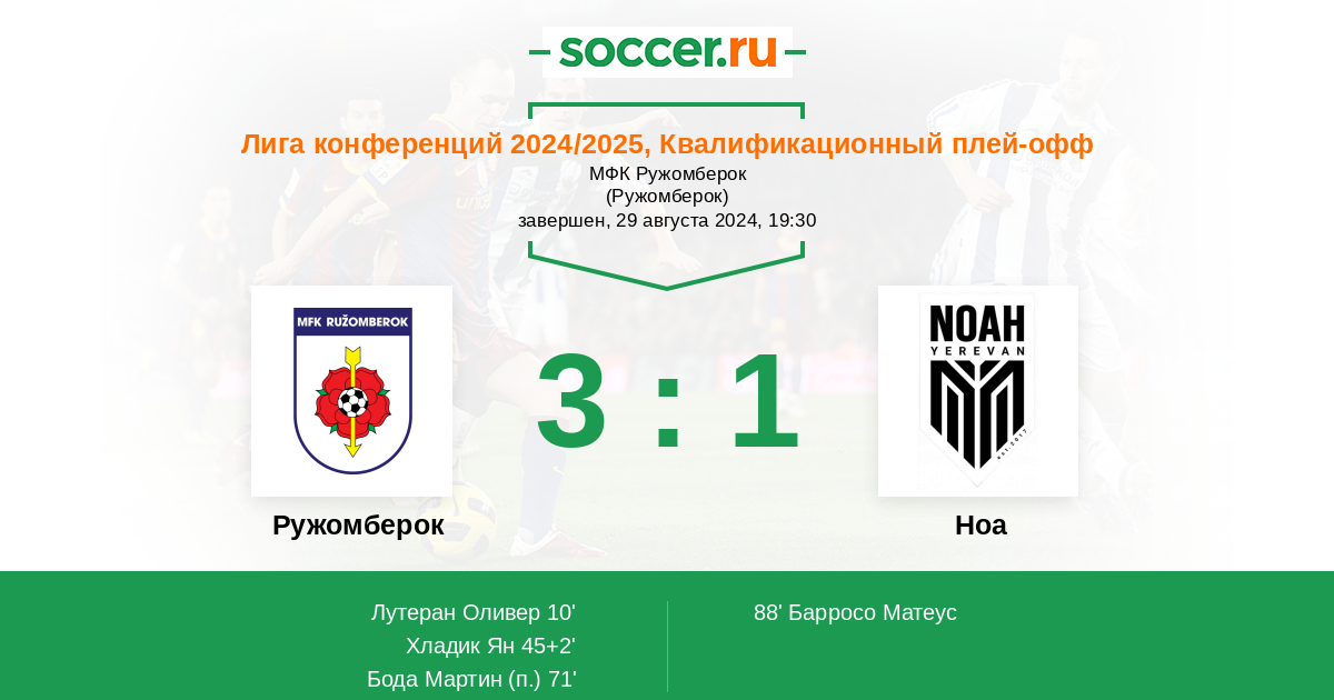 Протокол матча Ружомберок против Ноа