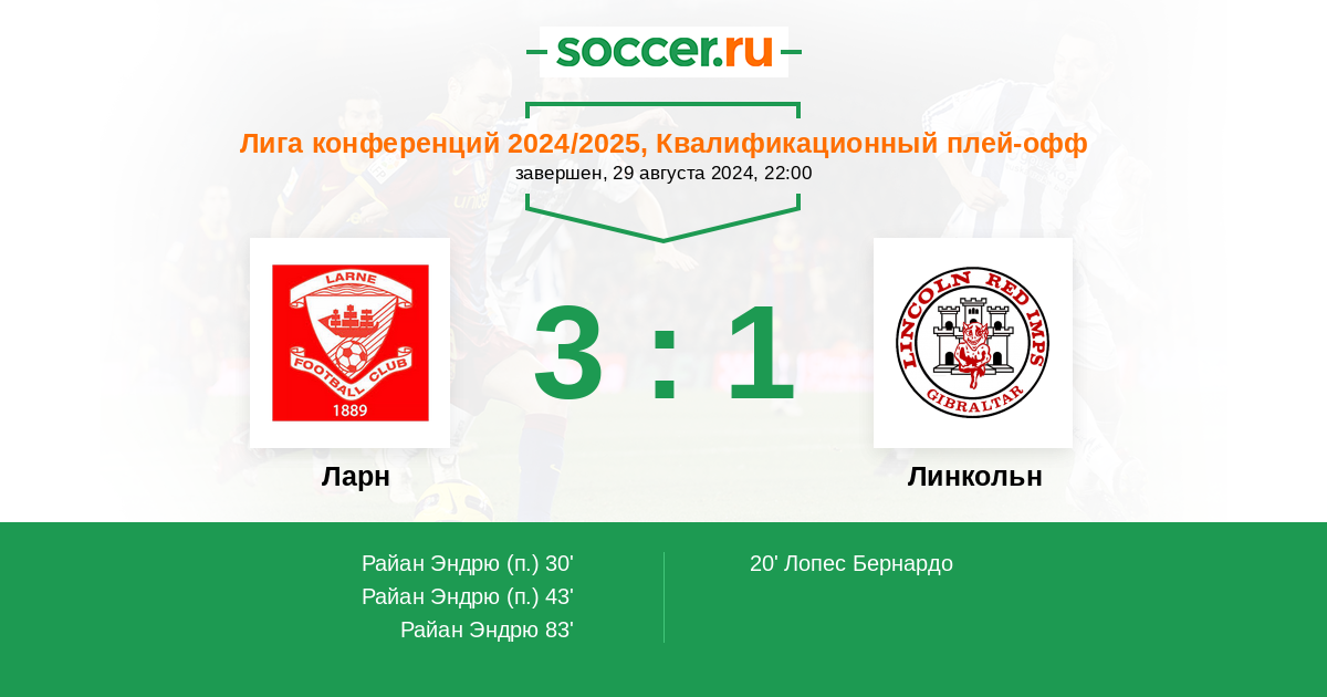 Протокол матча Ларн против Линкольн