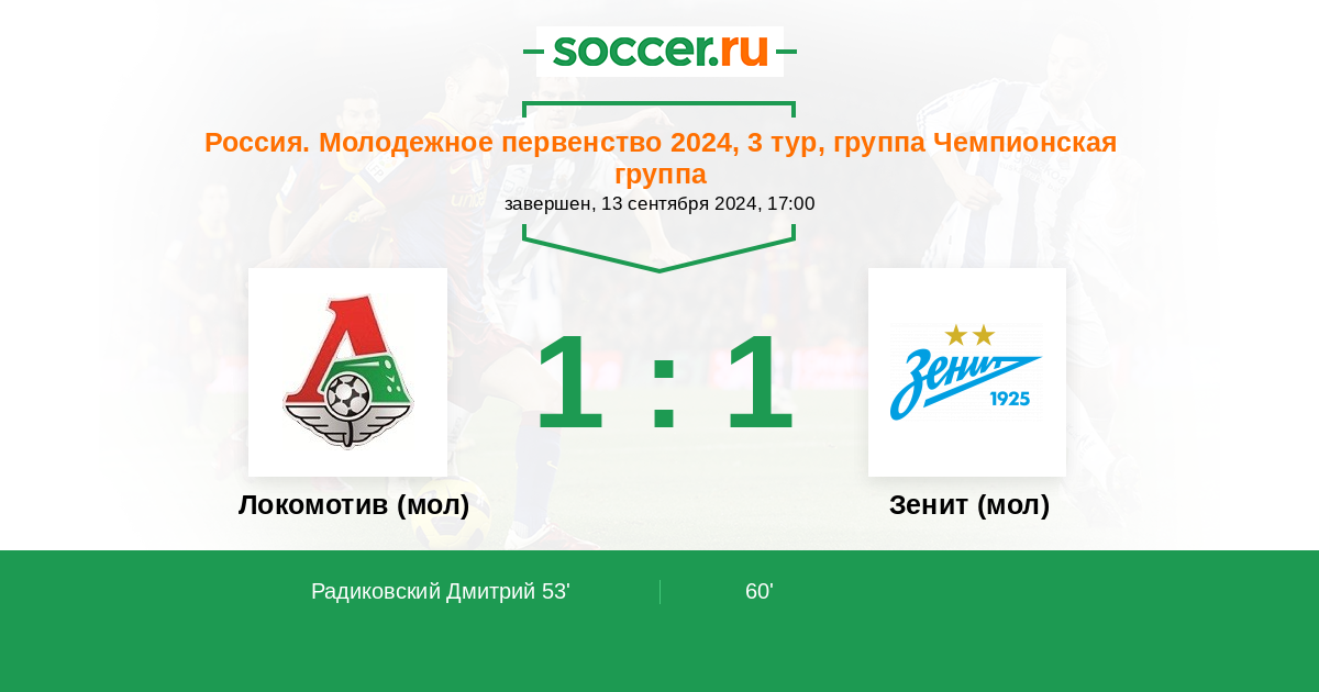 Протокол матча Локомотив (мол) против Зенит (мол)